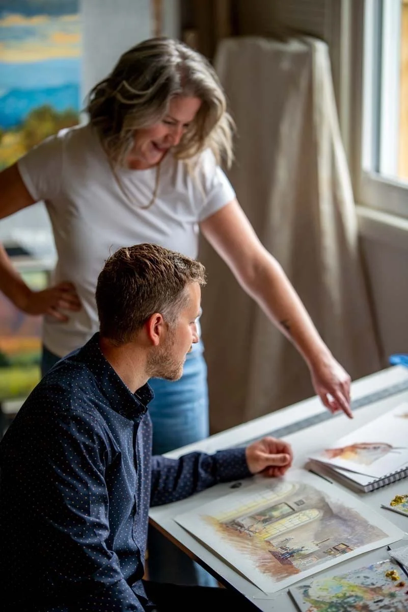 Jonathan Howe: Jonathan Howe lives in Knoxville, Tennessee, alongside his wife Sarah and two daughters, Aidyn and Susanna. He works from his home studio creating landscapes and portraits. An award-winning artist, his original oil paintings have been collected nationwide. “The Artist and the Wren” is his premiere in children’s book illustration and is a captivating story written by his sister-in-law that he is eager to help bring to life with each stroke of the brush. You can check out more of his work at www.jonathanhowefineart.com.